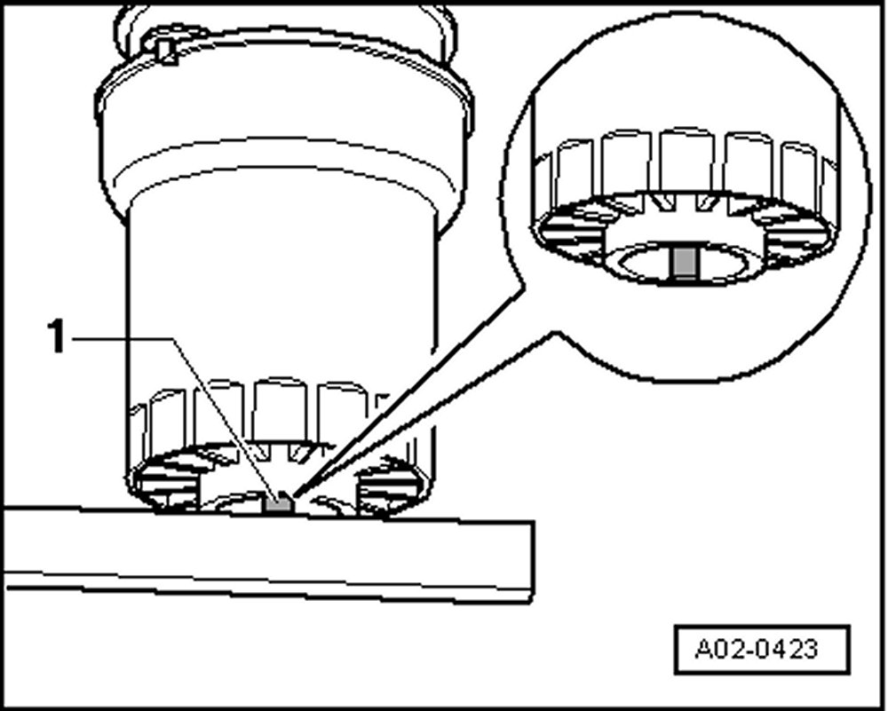 - Check whether bottom valve -1- is flush and not crooked, as in illustration (A02-0423).