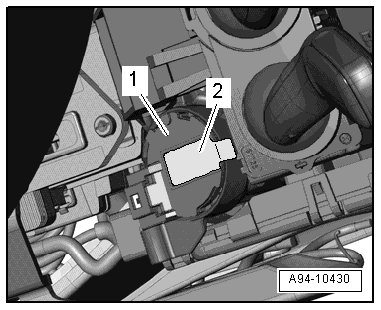 - Insert the (T40011) all the way into the hole and remove the lock cylinder - 1 - with the induction coil from the steering lock housing - 2 -.