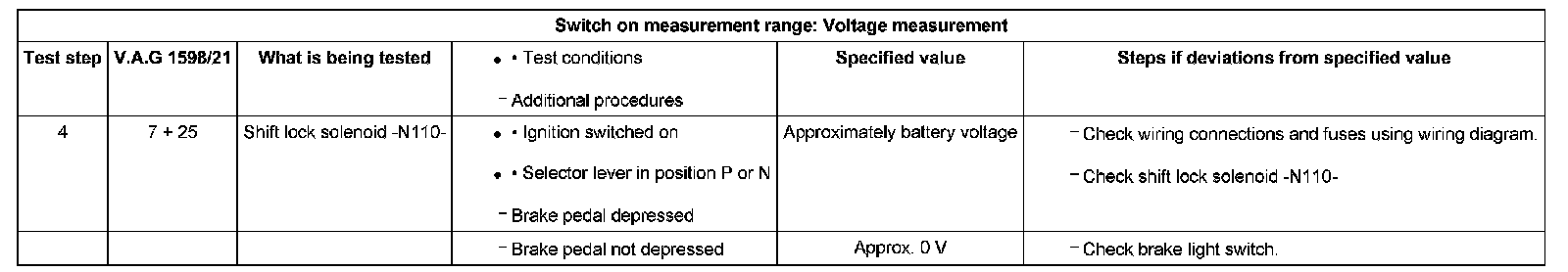 Test table - 01J, Continuously Variable Transmission (CVT)