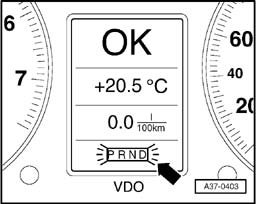3 - A flashing transmission range indicator in the instrument cluster points to a serious malfunction in the transmission (arrow). The condition is critical to safety or for the transmission.