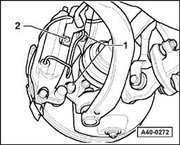 To avoid damaging upper link joints, wheel bearing housing must be braced against a rebound that is too strong, e.g. using engine/transmission jack V.A.G 1383 A