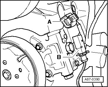 - Recreate the connection between connector - A - and connector - B - on the compressor (to the A/C compressor regulator valve (N280)) using an adapter cable from the connector test kit (V.A.G 1594C).