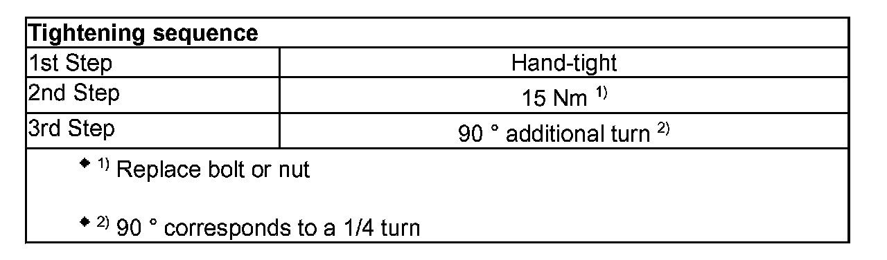 Torque 30 Nm + 90 degrees (1/4 turn)