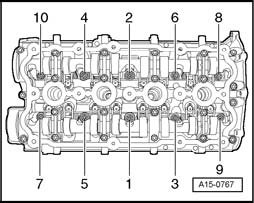 Tighten cylinder head in sequence indicated, in two stages as follows: