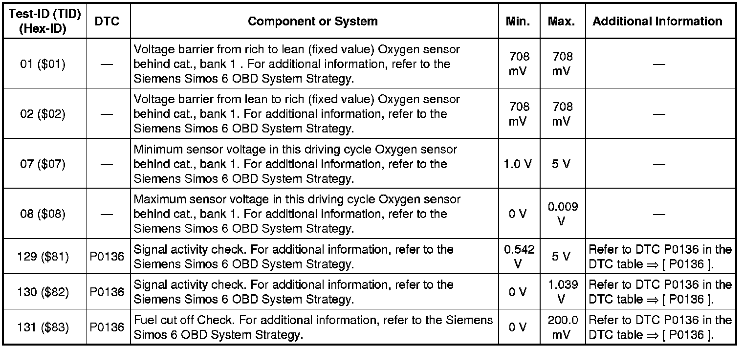 - If any of the components or systems fail to meet the specified values, refer to Diagnostic "Mode 03: Interrogating Fault Memory" to check for stored DTC's or the corresponding diagnostic repair procedure.