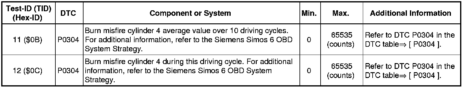 Test-ID 165 ($A5): Mis-Fire Cylinder 4 Data.