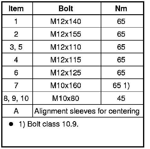 Fasten guide frame bolts in sequence 22 to 1 until they stop