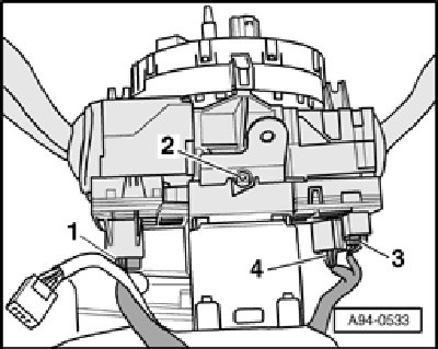 NOTE: Should any steering column switches require replacement, follow applicable component "Replacement" procedure using VAS 5051/5051 in operating mode "Guided Fault Finding",