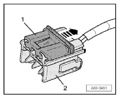 - Disengage connector lock - 1 - in direction of - arrow - in order to release connector - 2 -.