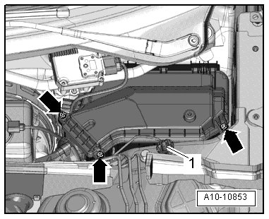 - Pull the plenum chamber cover rubber seal in front of the nut - 1 - slightly.
