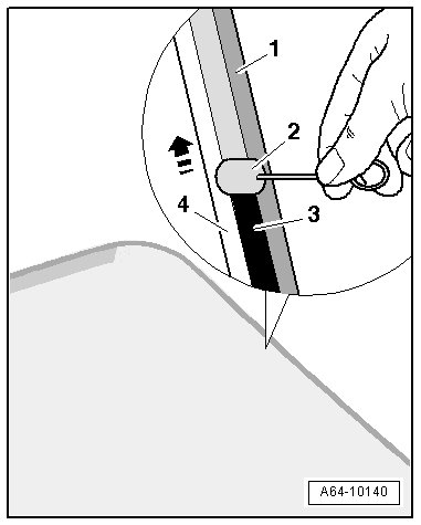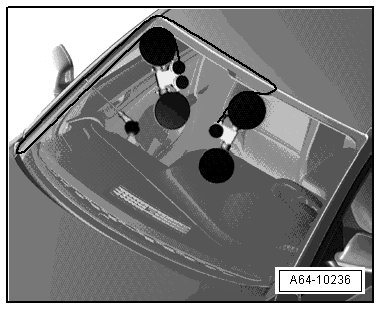 - When reusing the undamaged window, cut rest of adhesive material on window and flange with (V.A.G 1561 A) and (V.A.G 1561/8) so it is even, but do not remove completely.