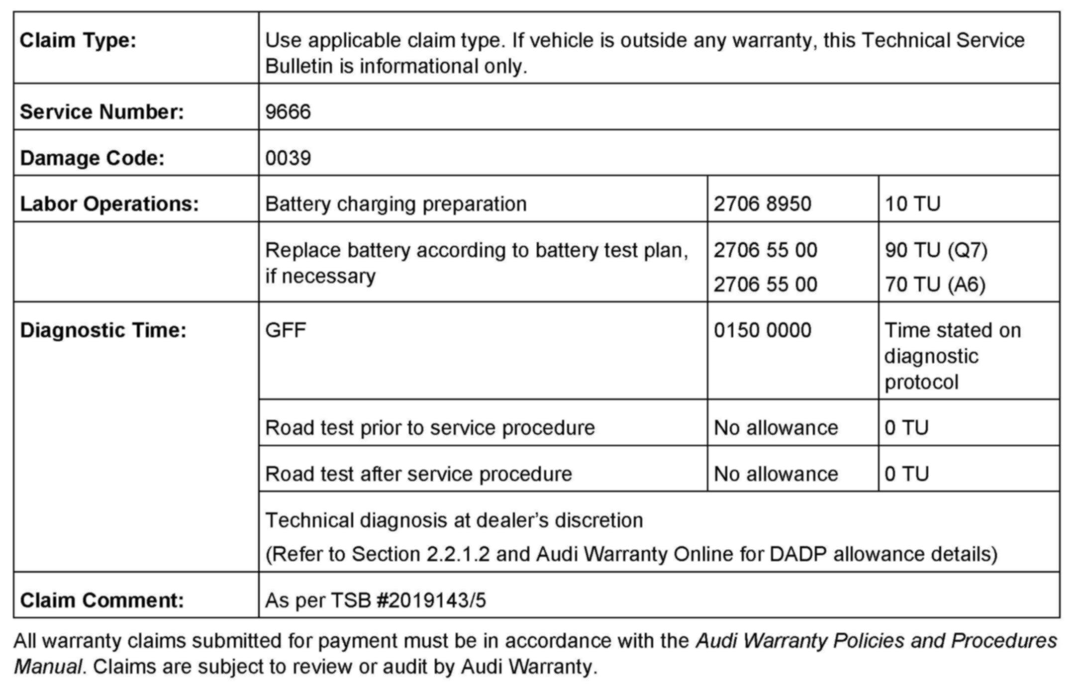 ^ The customer may report that the engine doesn't start due to a discharged vehicle battery.