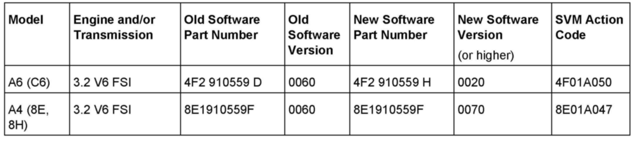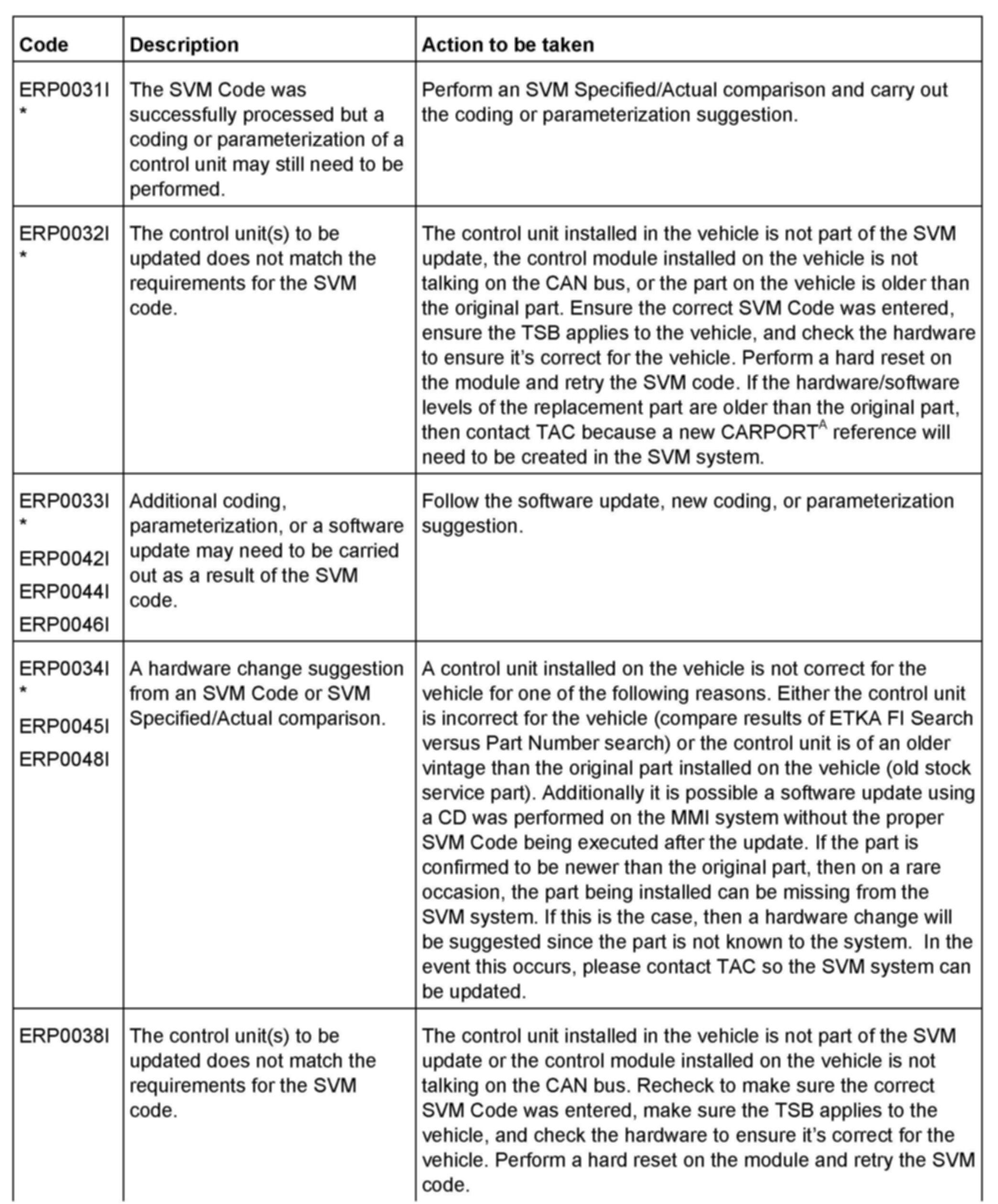2. Update the ECM using the SVM action code as listed in the table above, if necessary.