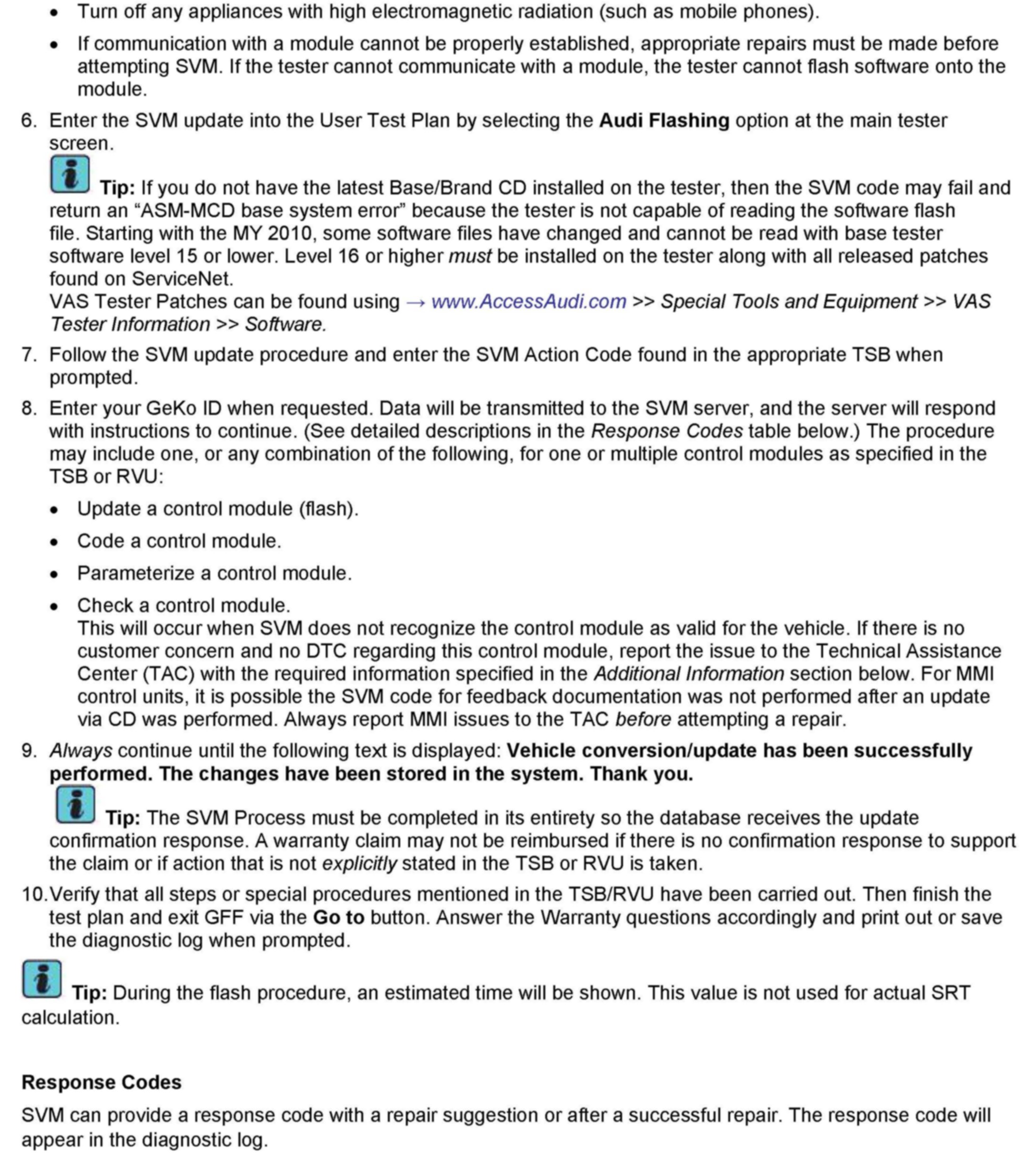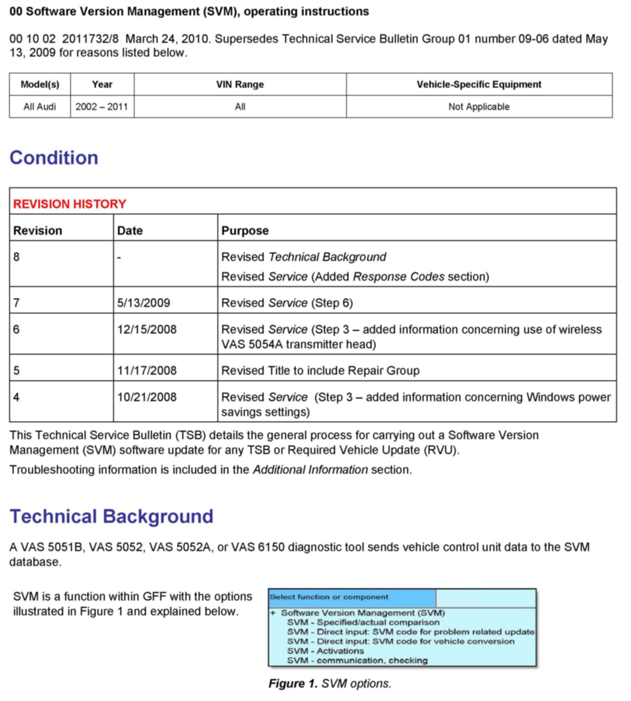 1. Follow all instructions in the attached TSB 2011732 00 Software Version Management (SVM), operating instructions.