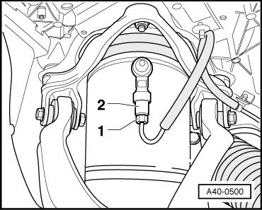 - Remove the connector pieces - 1 - from the residual pressure retaining valves - 2 - on both sides. Air then escapes.