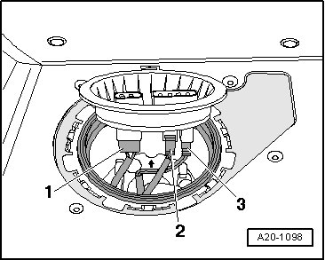 - Insert the fuel delivery line - 2 - and the Fuel Level Sensor 3 (G237) - 1 - until it engages audibly.