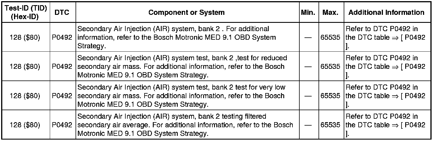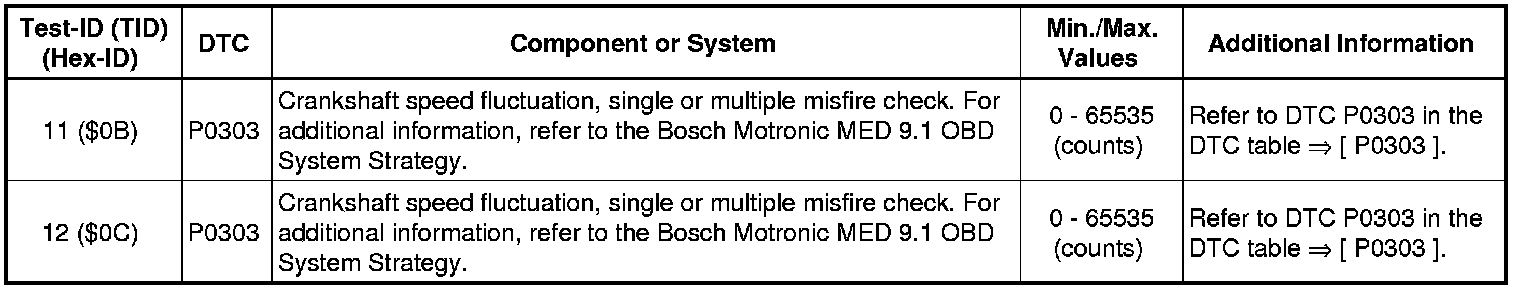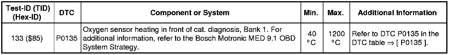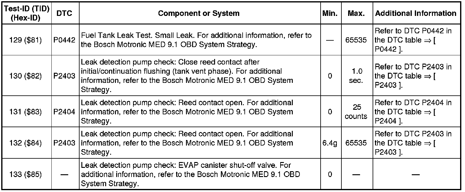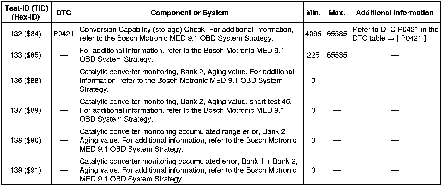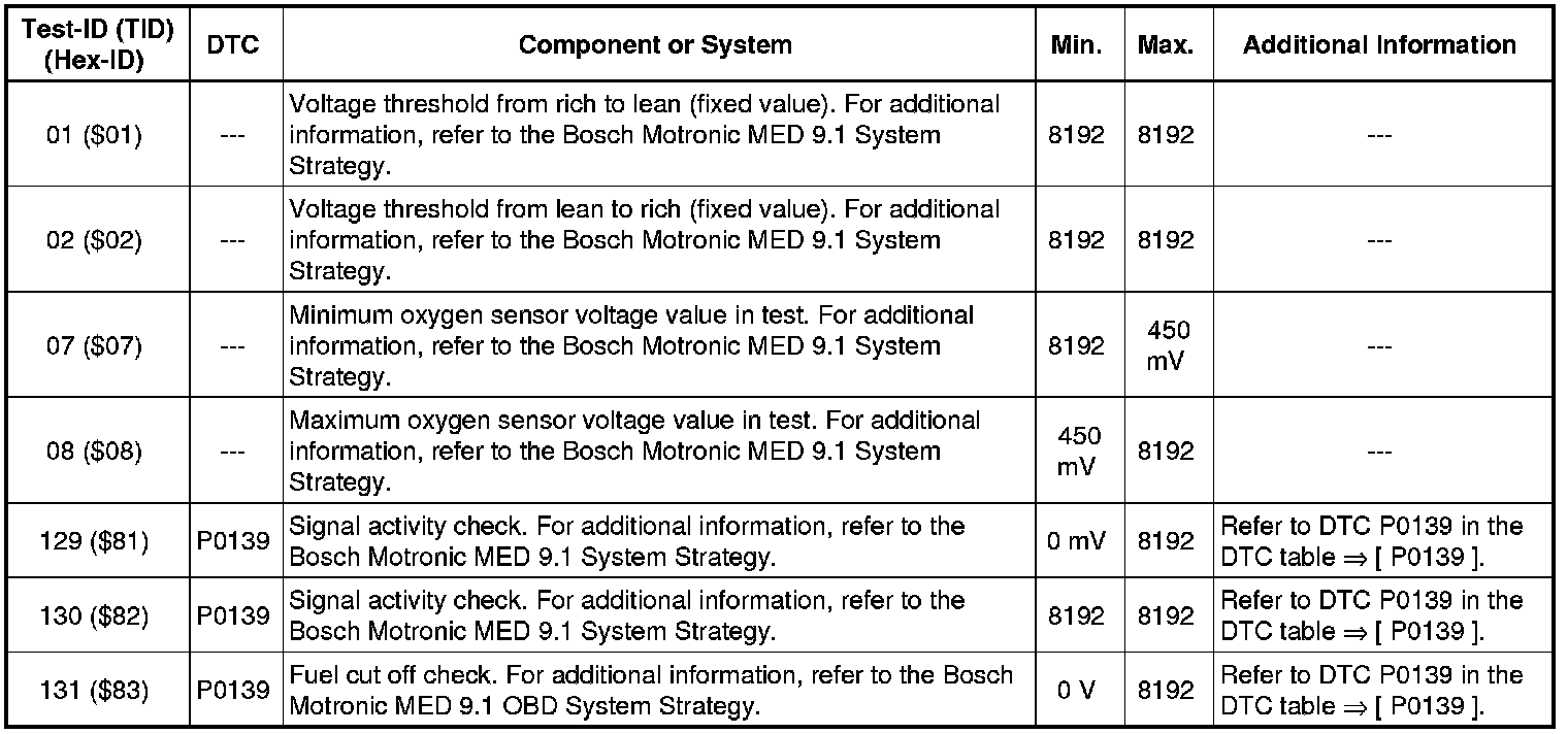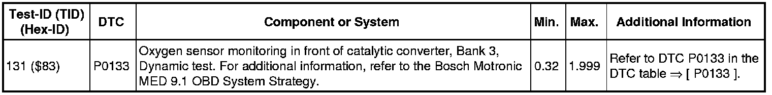 - If any of the components or systems fail to meet the specified values, refer to Diagnostic "Mode 03: Interrogating Fault Memory" to check for stored DTC's or the corresponding diagnostic repair procedure. Diagnostic Mode 03 - Read DTC Memory
