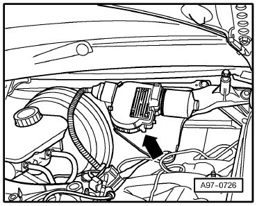 in plenum chamber, on Windshield Wiper Motor -V- => -arrow-