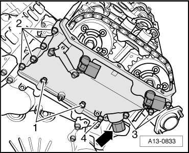 First pass: Bolts 2, 3 and 4 5 Nm