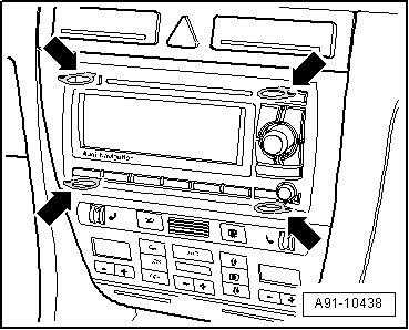 - Remove Radio/Navigation Display Unit Control Module (J503) from instrument panel using grip eyes on Radio Removal Tool (T10057).