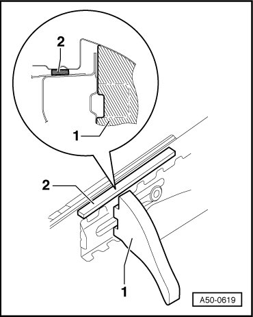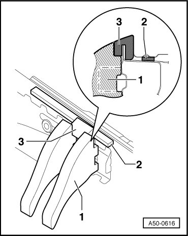 - Remove protective adhesive film from seal - 1 -, insert in fender and press on firmly.