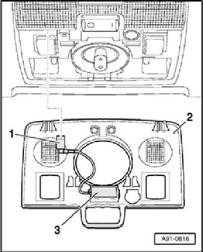 - Carefully remove interior lamp module trim using hook 3370 as illustrated - arrow -.