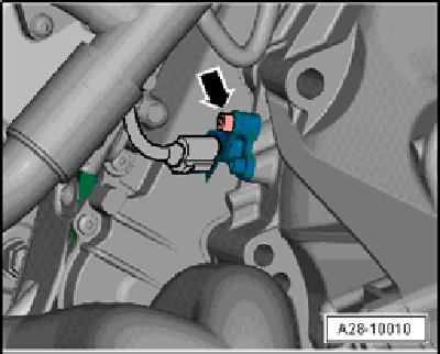 - Disconnect the gray Engine Speed (RPM) Sensor G28 electrical harness connector - arrow -.