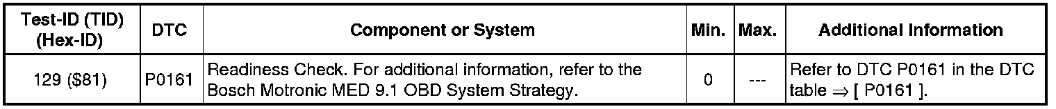 - If any of the components or systems fail to meet the specified values, refer to Diagnostic "Mode 03: Interrogating Fault Memory" to check for stored DTC's or the corresponding diagnostic repair procedure.