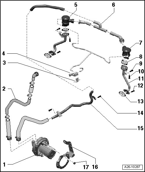 • Checking, refer to => [ Secondary Air Injection Combination Valves, Checking for Function and Leaks ] Secondary Air Injection Combination Valves, Checking for Function and Leaks