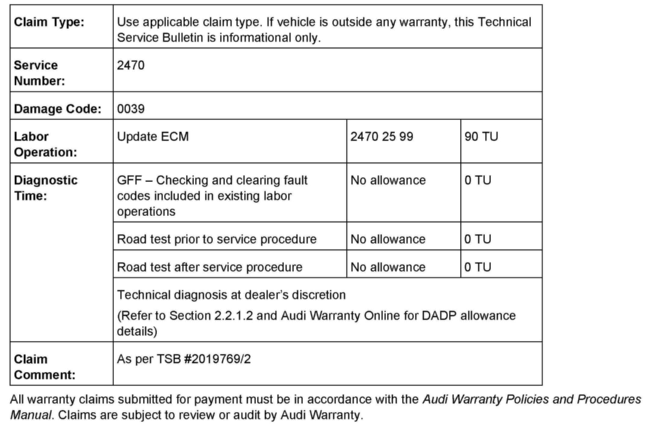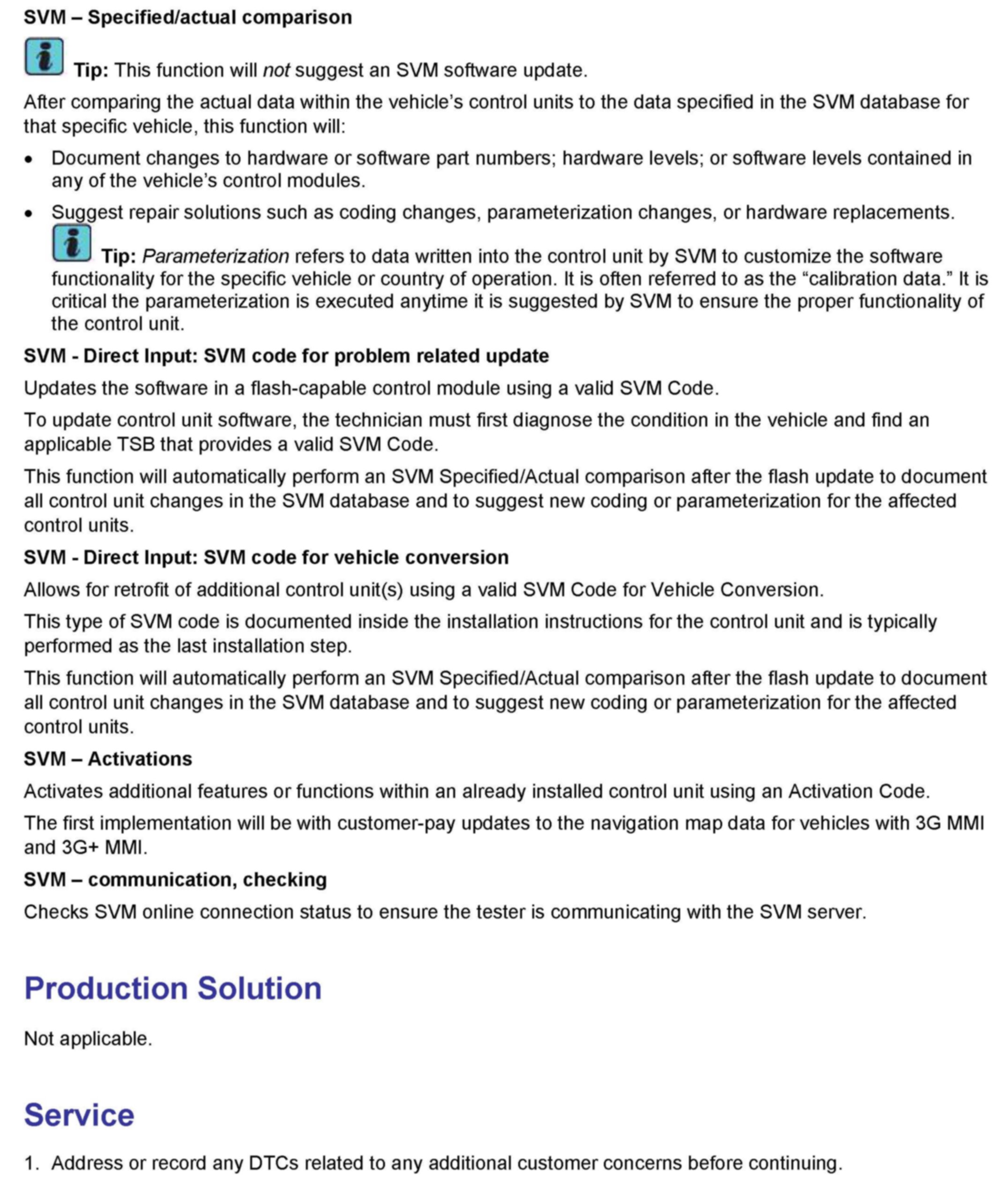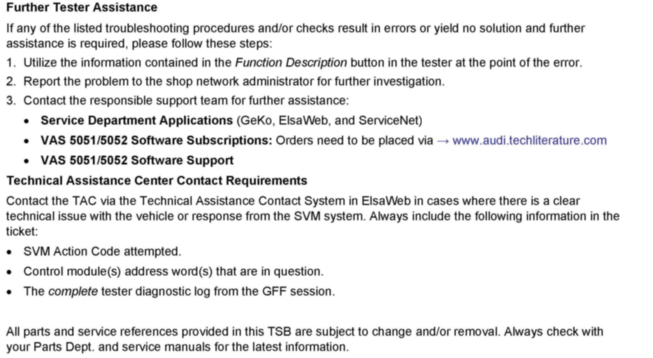 2. Update the ECM software of the affected vehicles (two ECMs for RS4) using the SVM action code as listed in the table above if necessary.