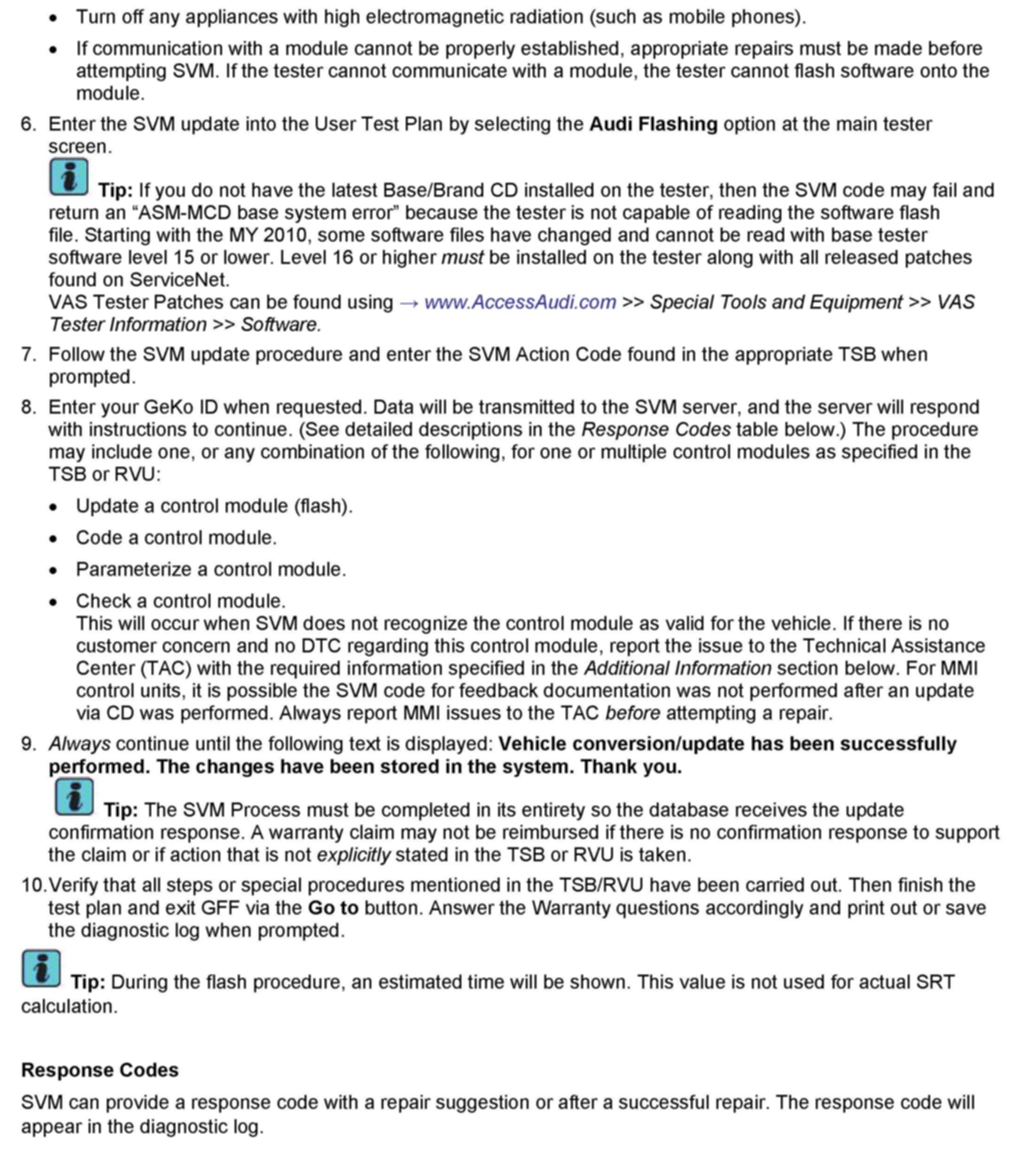 1. Follow all instructions in the attached TSB 2011732 00 Software Version Management (SVM), operating instructions.