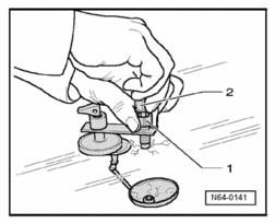 - Tighten injector - 1 - by turning threaded spindle - 2 -. The correct pressure is achieved when the impact point turns clear from the center out.