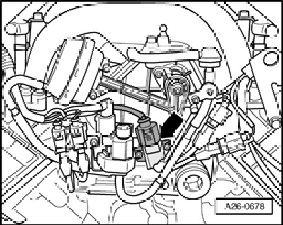 - Front at intake manifold - arrow -.