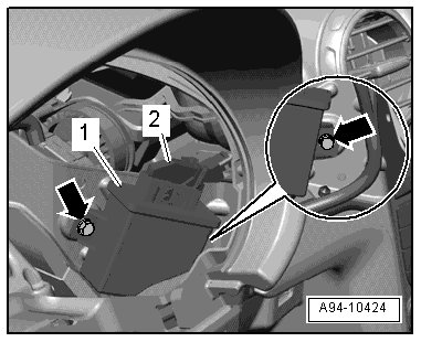 - To disconnect electrical connector, press catch - 1 -, turn retaining bracket in - direction of arrow - and remove connector.