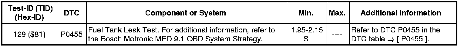 • Depending on diagnostic tester and protocol used, the information in diagnostic mode 01 may be referred to by different names such as Test-ID (TID), Hex-ID, Component-ID (CID), or On-Board Diagnostic Monitor Identifier (OBDMID).