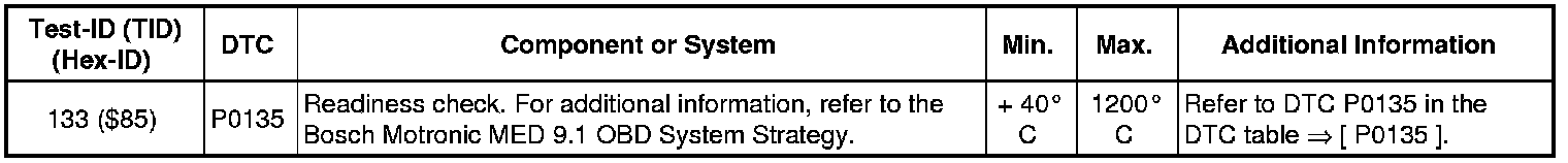 - If any of the components or systems fail to meet the specified values, refer to Diagnostic "Mode 03: Interrogating Fault Memory" to check for stored DTC's or the corresponding diagnostic repair procedure => [ Diagnostic Mode 03 - Read DTC Memory ] Diagnostic Mode 03 - Read DTC Memory.