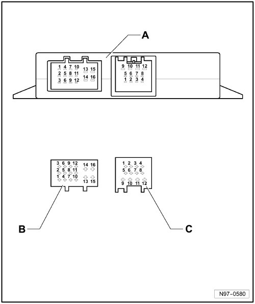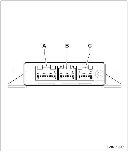 Connectors on Towing Recognition Control Module -J345- => [ Connectors on ]
