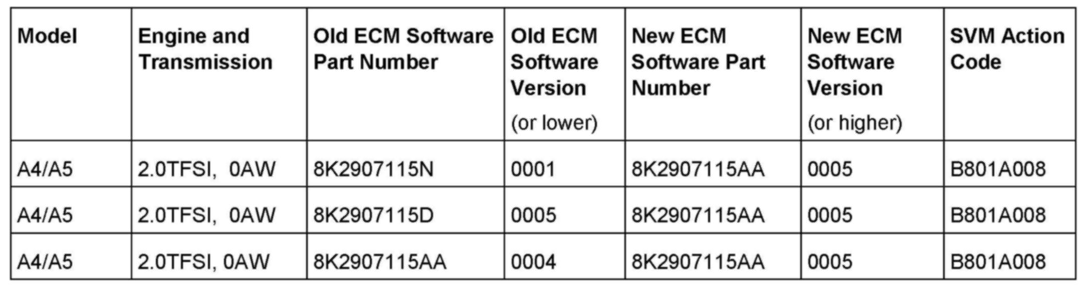 2. Update the ECM (J623) using the SVM action code as listed in the table above if necessary.