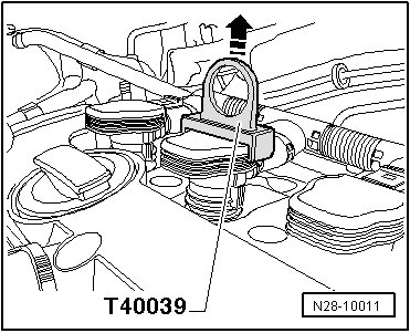 - Pull all the ignition coils out approximately 30 mm from the spark plug holes using the (T40039).