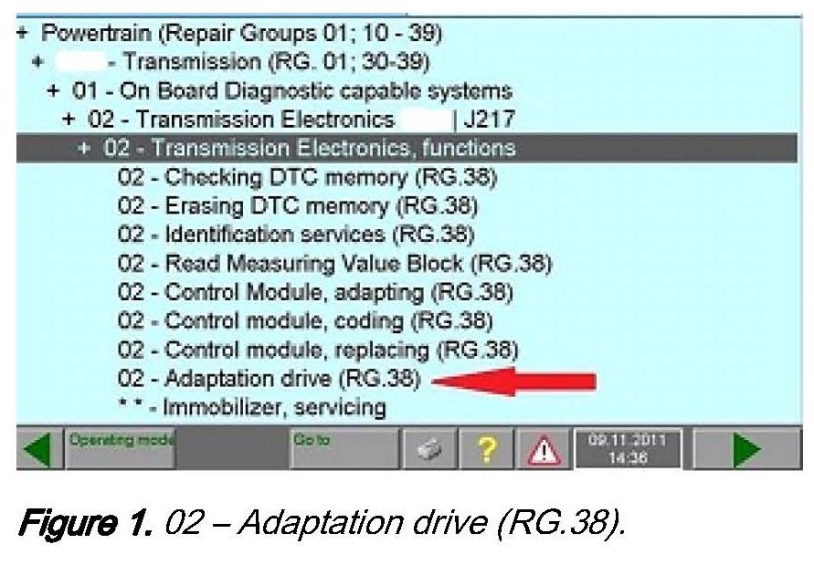 2. For later vehicles this test plan can be found in GFF or Guided Functions > Powertrain > 09L Transmission > 01 On Board Diagnostic capable system > 02 Transmission electronics, functions > 02-Adaptation Drive.