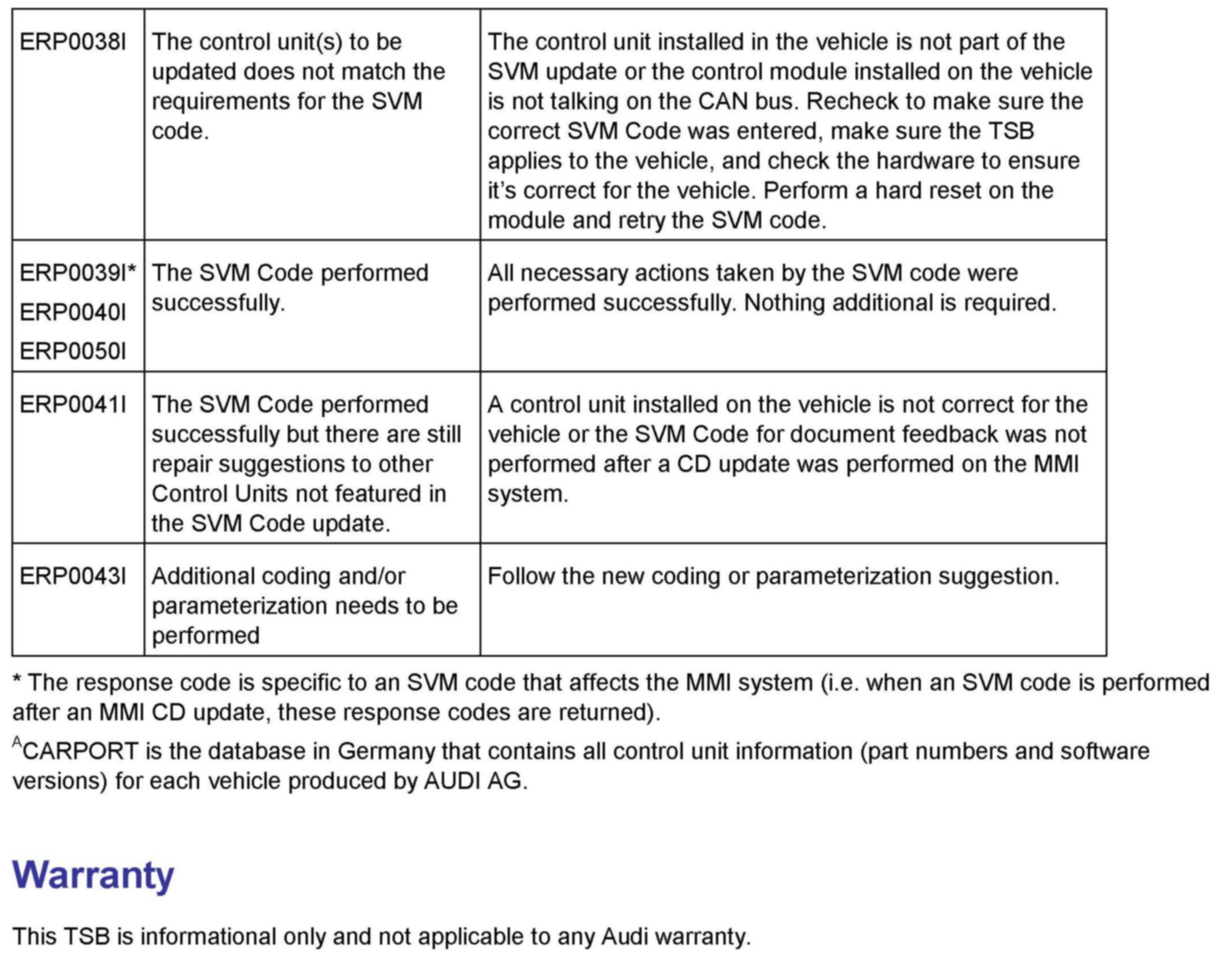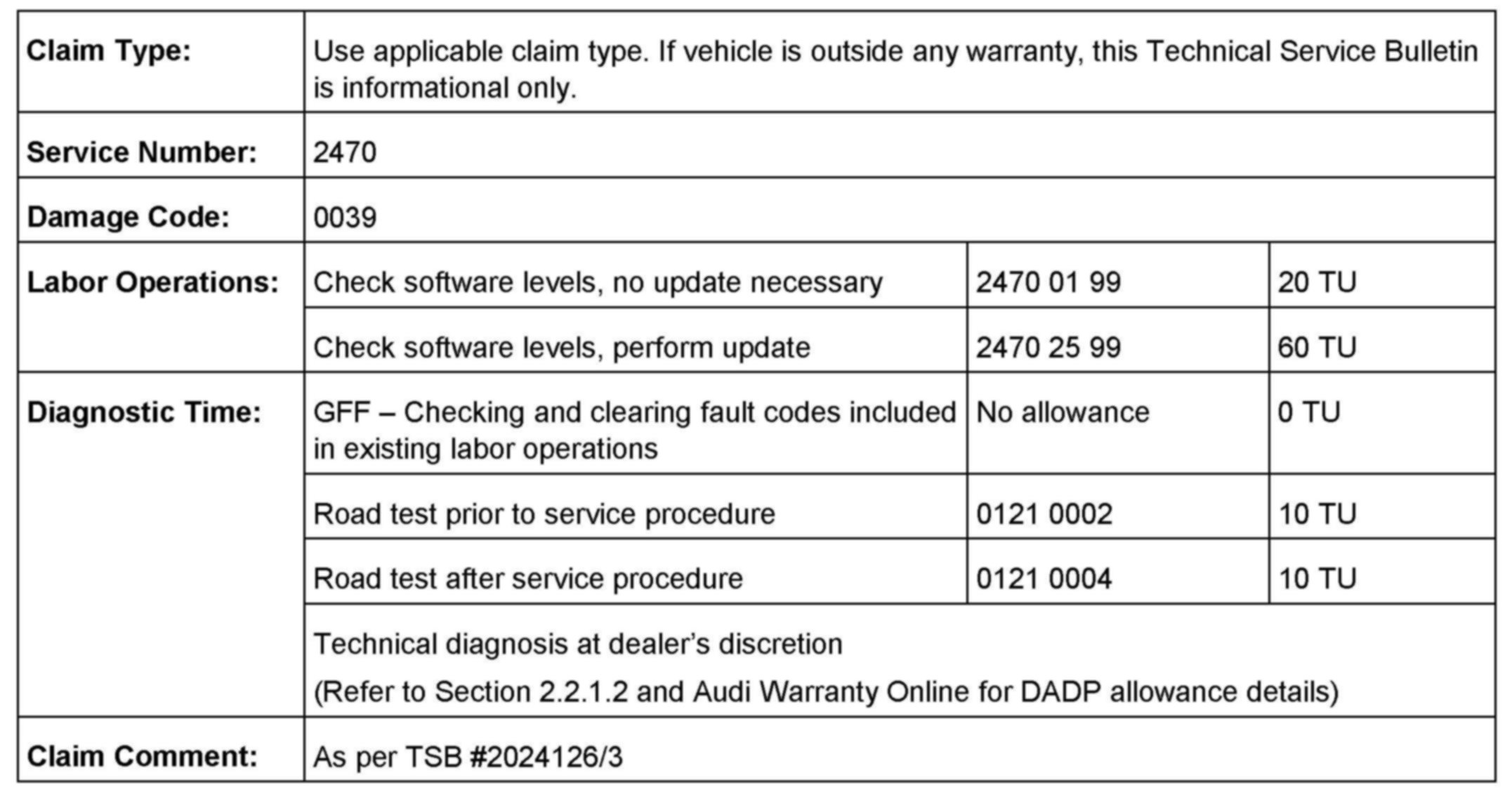 All warranty claims submitted for payment must be in accordance with the Audi Warranty Policies and Procedures Manual. Claims are subject to review or audit by Audi Warranty.