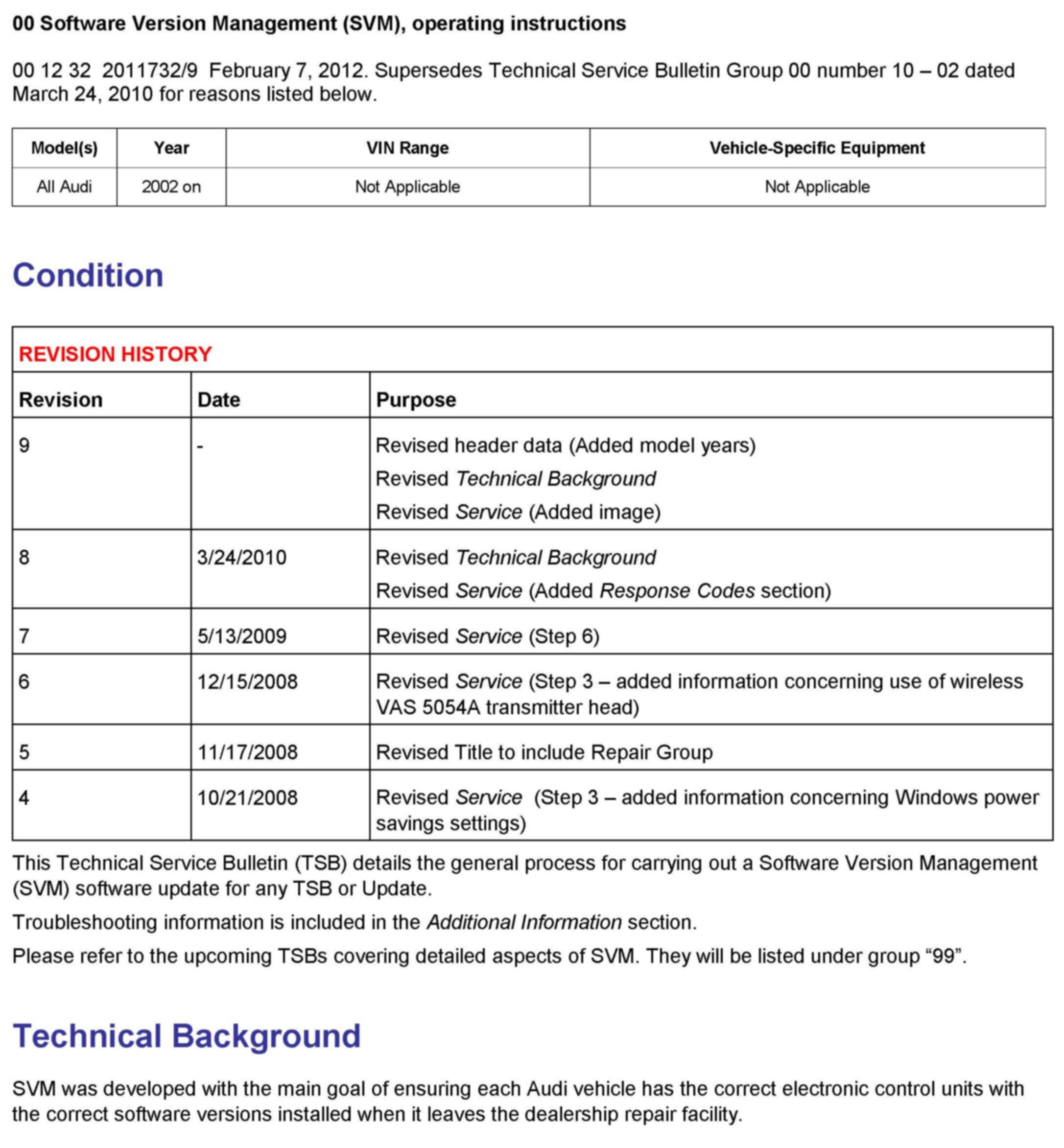 ^ TSB 2011732 00 Software Version Management (SVM), operating instructions.