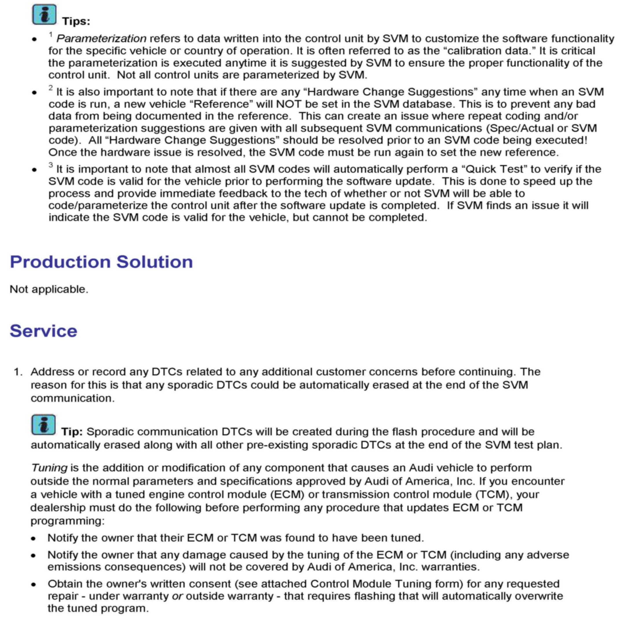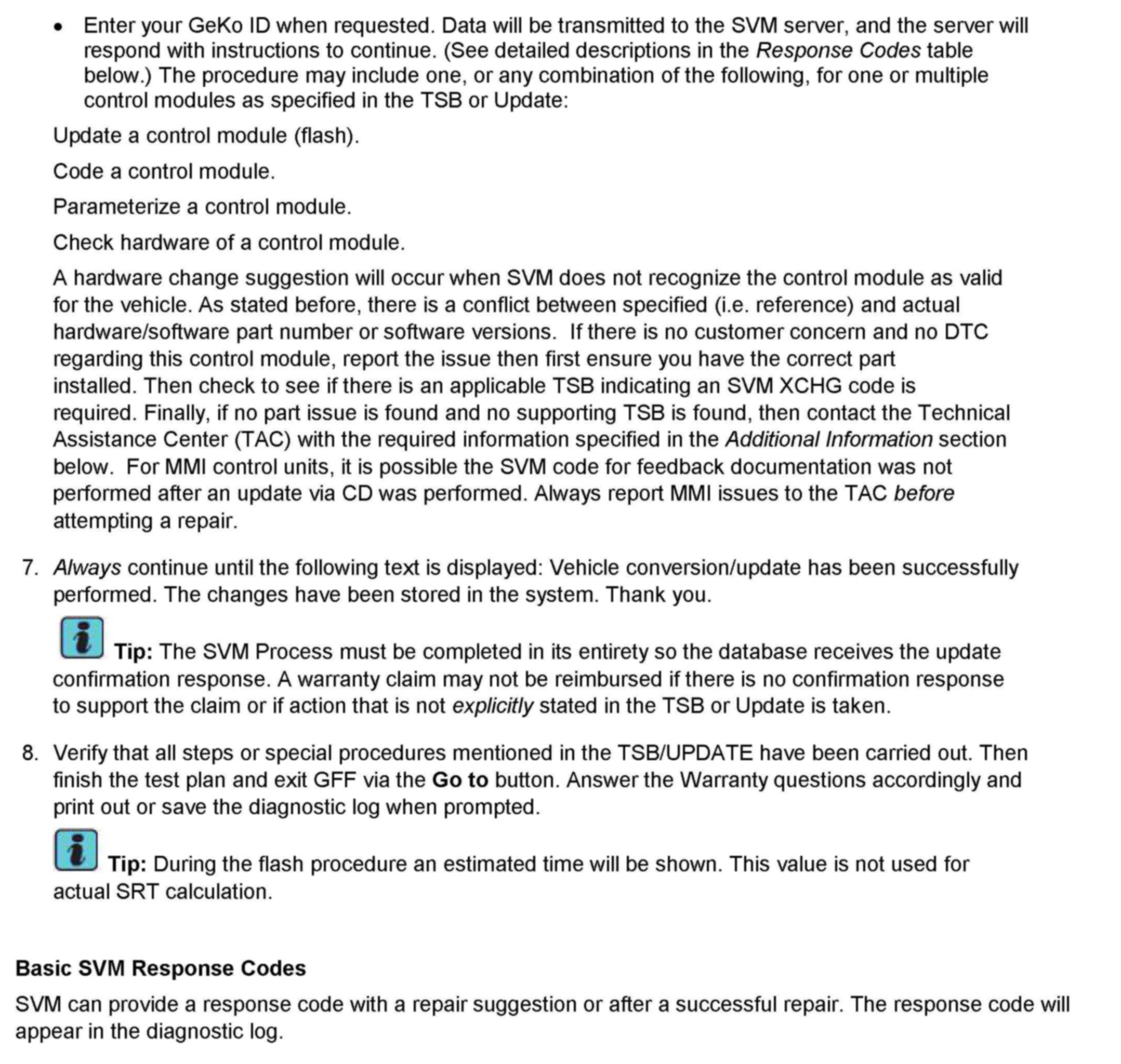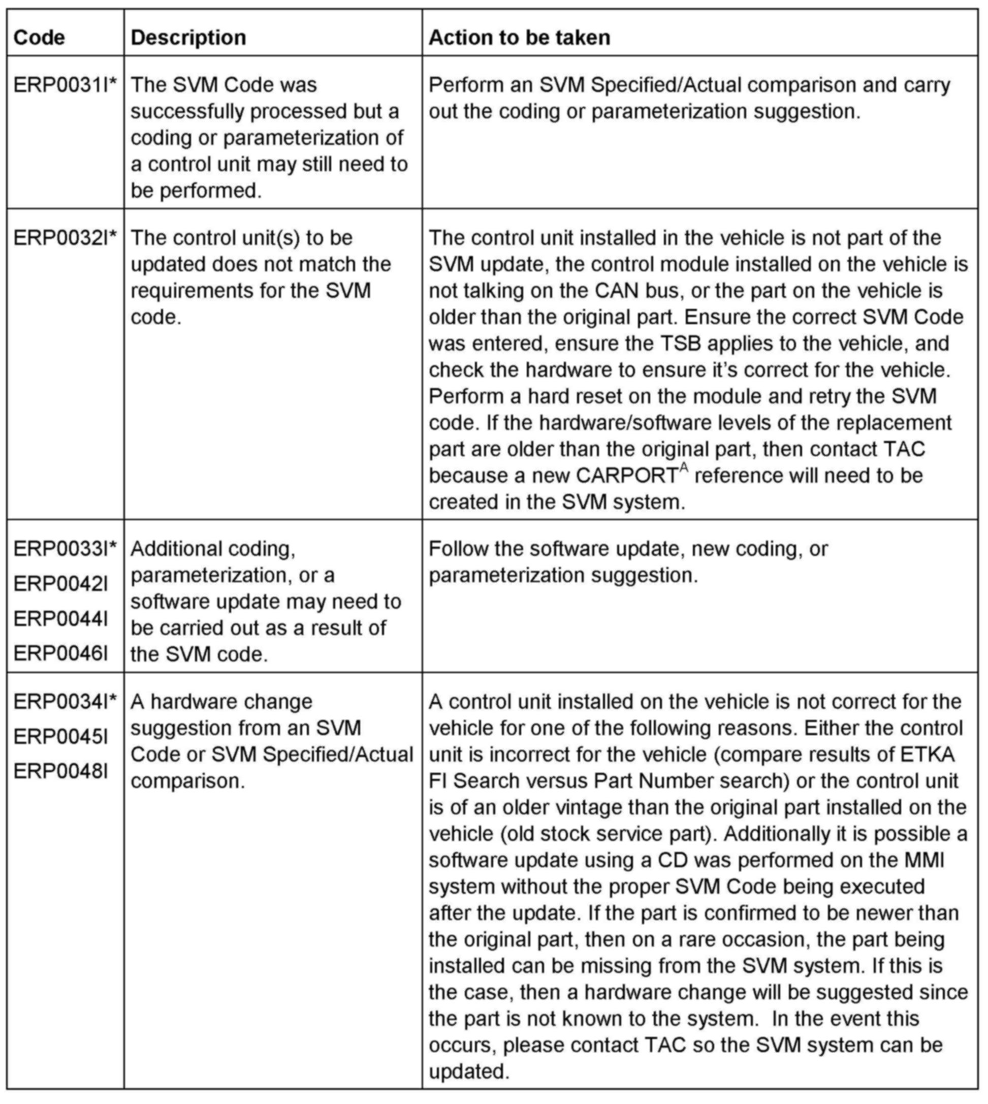 2. Update the ECM using the SVM action code as listed in the table above if necessary.