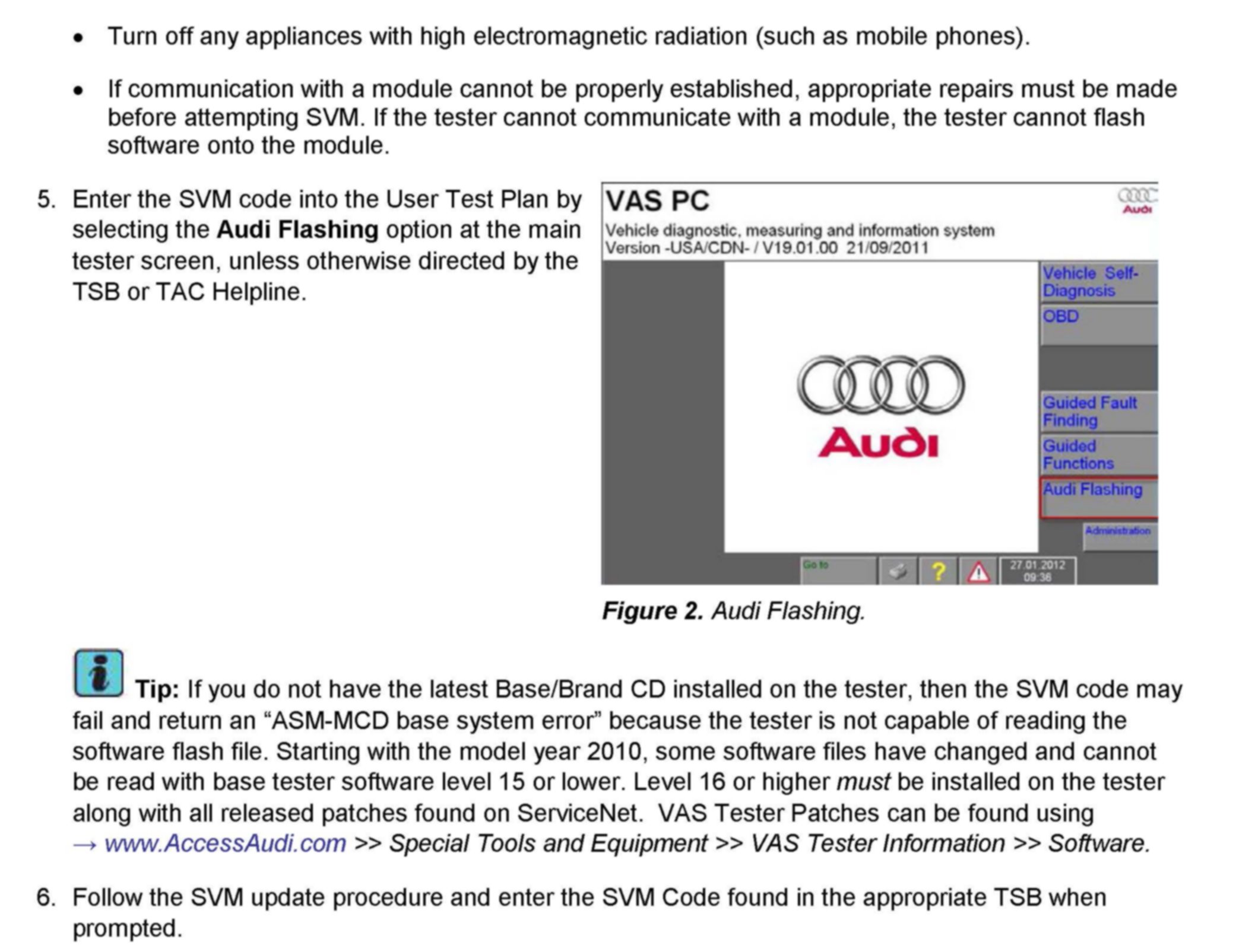 1. Follow all instructions in the attached TSB 2011732 00 Software Version Management (SVM), operating instructions.