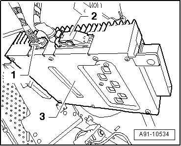 - Now disconnect electrical connections - 1 - and - 2 - on digital sound system control module - 3 -.