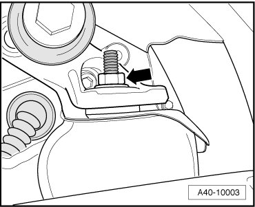 - Loosen the nut - arrow - for the front transmission mount.