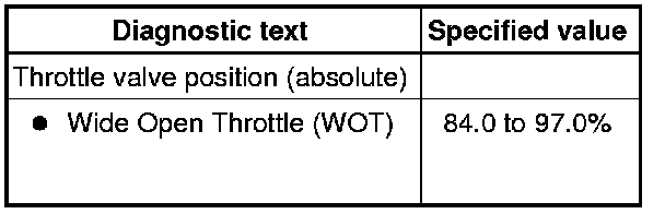 - Using the scan tool, check the throttle valve position (absolute) at Wide Open Throttle (WOT):