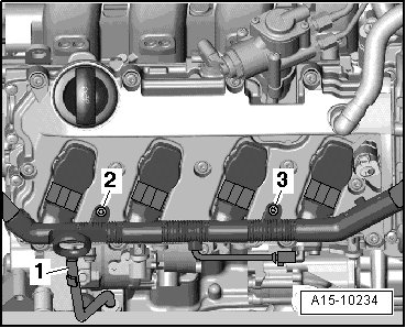 - Remove oil dipstick - 1 - from guide tube.