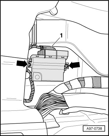 - Remove nuts - arrows - and remove vehicle electrical system control module 2 (J520).