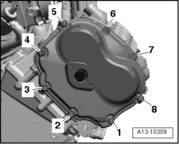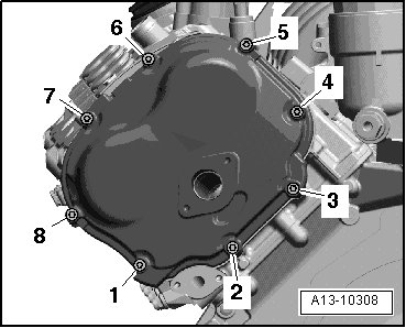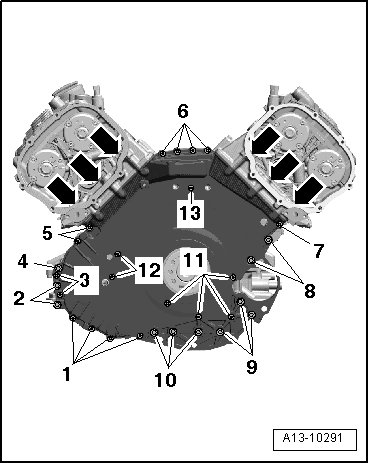 Second pass: Bolts - 1 to 13 - 8 Nm in diagonal sequence